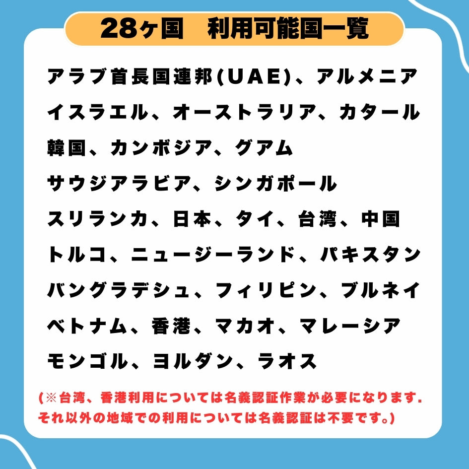 (※台湾、香港利用時は名義認証が必要になります。)